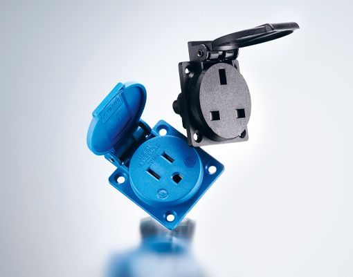 De Perilex-contactdozen voor montage op de wand volgens DIN 49445/46 zijn spatwaterdicht conform IP44 en bestand tegen hitte, kou en uv-straling.